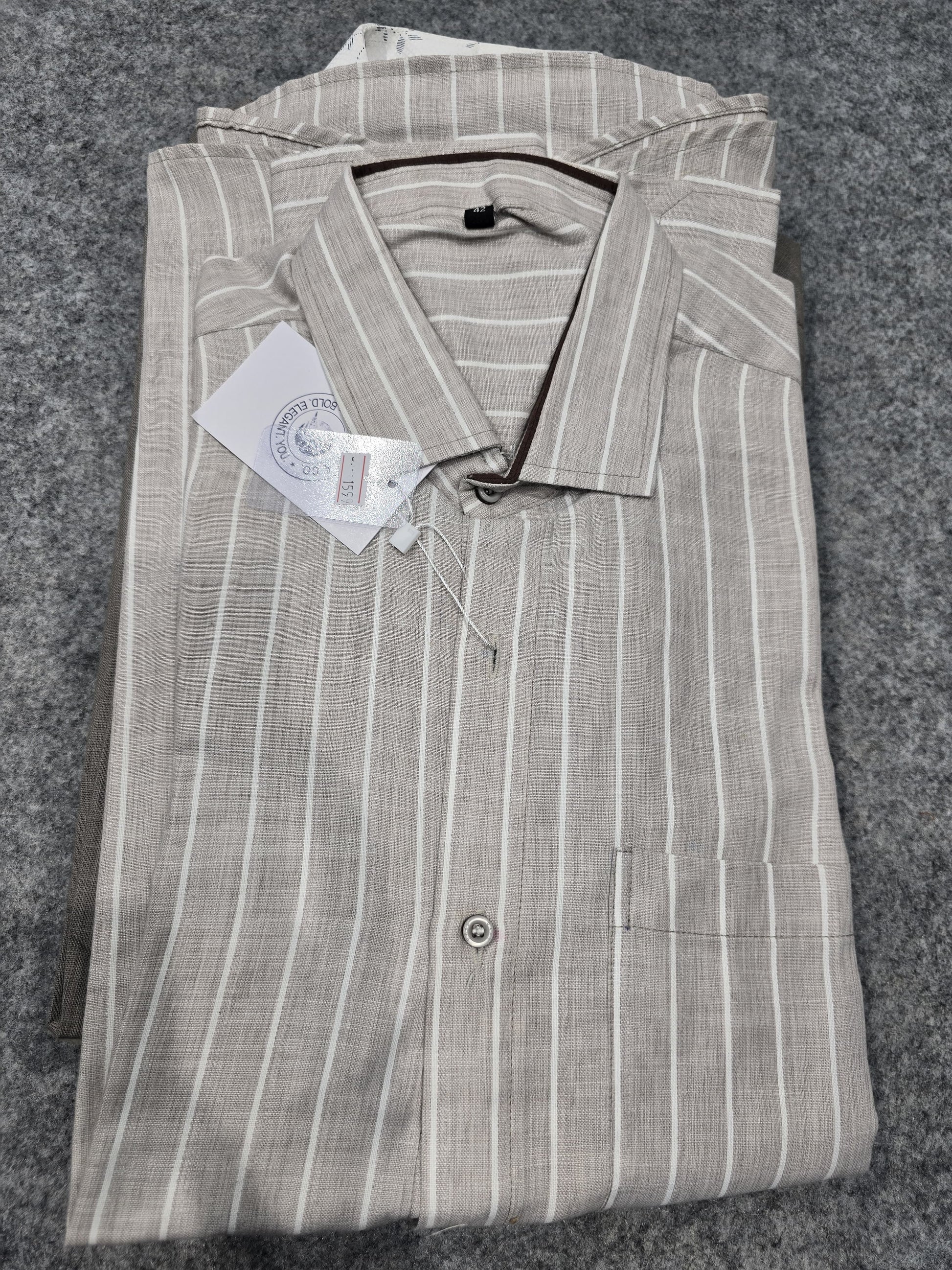 Timeless sophistication meets everyday comfort in The Classic Linen Striped Shirt. Featuring a neutral-toned fabric with elegant vertical white stripes, this piece is designed for those who appreciate minimalist yet refined style. The lightweight linen fabric ensures breathability, making it perfect for warm climates and all-day wear.
